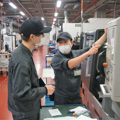 入社後半年間は工場やオフィスなど様々な部署に1~2週間程度行っていただき、商品や機械加工、会社のことについて